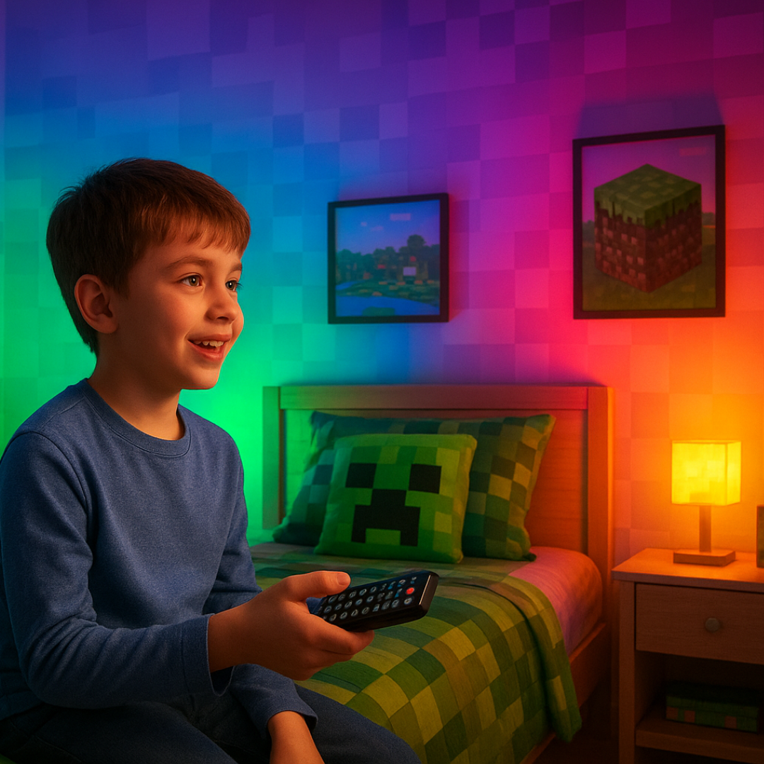 ¿Tu espacio se siente vacío o sin vida? Da un toque de magia con solo un clic. Elige entre 16 colores y transforma tu habitación en un refugio digno de tus mejores noches de Minecraft. Desde el sofá, la cama o tu setup, vuelve a iluminar esos recuerdos bloque a bloque.